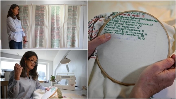 لإحياء ذكرى الفلسطينيين الذين قضوا جراء الإبادة التي ترتكبها إسرائيل في قطاع غزة، ابتكرت المعالجة الإيرلندية المتخصصة بطب العظام، ماري إيفرز، مشروعا لتطريز أسماء الشهداء وتوثيقها بالخيوط.