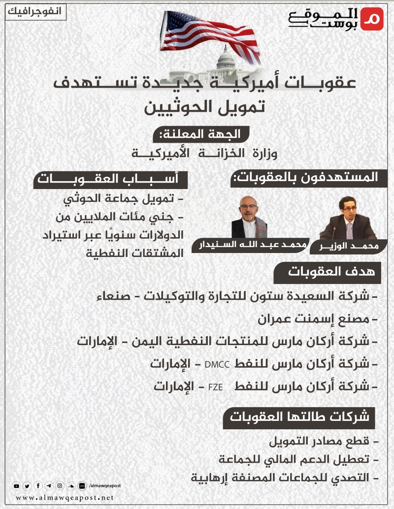 شخصيات وشركات جديدة عاقبتها واشنطن لصلتها بجماعة الحوثي