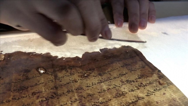 وتقول دحيدل لمراسل الأناضول، بينما تعالج وثيقة عمرها 200 عام: "هنا تجري عملية إعادة بث الحياة من جديد للوثائق، نستخدم أسلوبا علميا، وموادا طبيعية لمعالجة الوثائق".