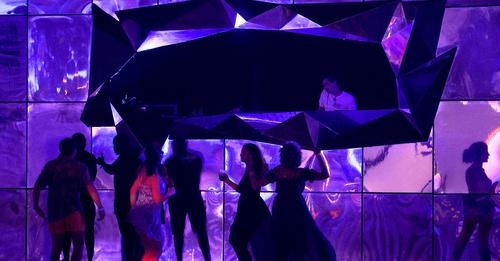 وأمام المنصة، كان حبيبان يرقصان بهدوء غير عابئين بمن يرقص حولهم ومن بينهم شاب يرقص عاري الصدر وأخرى ترقص بفستان أزرق قصير.