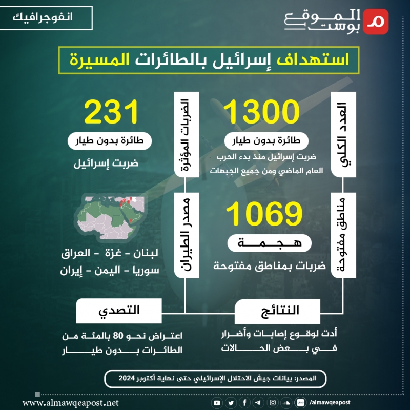 عدد الطائرات المسيرة التي استهدفت بها إسرائيل