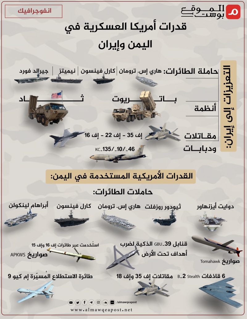 قدرات أمريكا العسكرية المستخدمة في اليمن وإيران