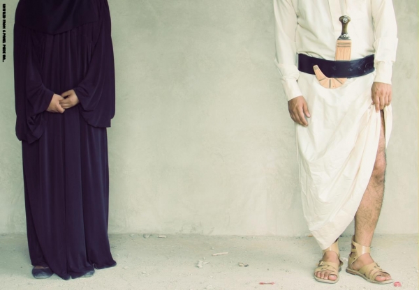وفي هذه السلسلة المصورة، للفنان ايبي إبراهيم، تتغير أزياء الرجل اليمني، بينما تبقى المرأة اليمنية بالزي ذاته وووضعية الوقوف ذاتها وكأن الوقت لا يؤثر أو يتأثر بها. وانبثق هذا العمل الفني من المشاهدات التي لاحظها اليمني إيبي، خلال عام 2013، حيث كان يسافر من وإلى اليمن بشكل مستمر، ولكنه لاحظ أن "اللون الأسود" كان طاغياً في بلاده آن ذاك.