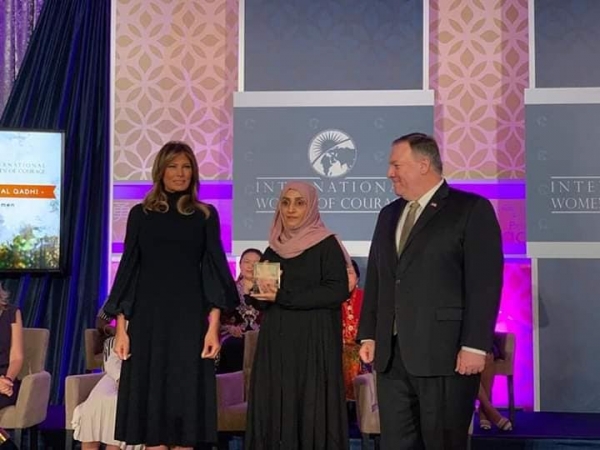 [ بومبيو وزير الخارجية الأمريكي يكرم الناشطة اليمنية ياسمين القاضي ]