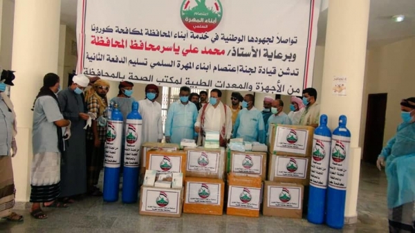 وفي السياق ذاته، قال رئيس لجنة الطوارئ في لجنة الاعتصام السلمي سعد القميري "قدمنا لمكتب الصحة في محافظة المهرة 120 جهاز حراري، و100 أنبوب تغذية الأطفال، و40 أسطوانة أكسجين (40 لترا)، و18 ألف كمامة طبية، و50 شريحة فحص سريع لمكافحة جائحة كورونا في المحافظة.