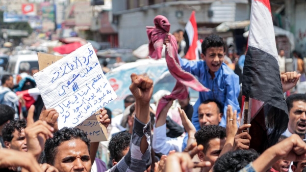 [ خلال تظاهرة في تعز ضد الإمارات (أحمد الباشا/فرانس برس) ]