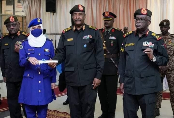 وأقيم حفل تخرج الشابة اليمنية "رحمة الحوشبي"، في العاصمة السودانية الخرطوم، حيث جرى توزيع شهادات دبلوم الكلية الحربية لضباط الدفعتين (67) كلية حربية و (19) علوم الطيران، بحضور رئيس مجلس السيادة السوداني عبد الفتاح البرهان.
