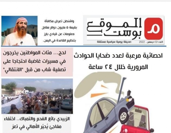 [ جزء من الصحفة الأولى للصحيفة التي تحمل اسم الموقع بوست ]