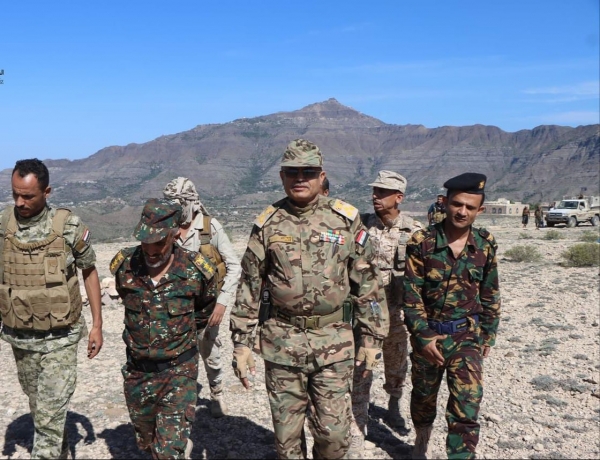 تفقد اركان حرب محور تعز العميد عبد العزيز المجيدي، الإثنين، الوحدات القتالية في قطاع اللواء الرابع مشاه جبلي بمدينة التربة مديرية الشمايتين جنوب تعز.