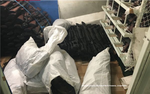 وفيما يلي صورة للأسلحة التي ضبطها طاقم "فرقاطة داروين" في 28 فبراير 2016.