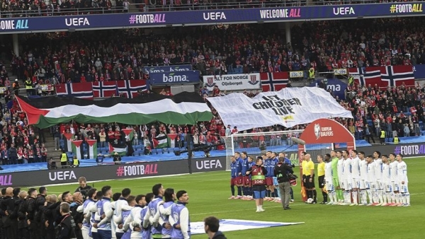 وأضاف أن المتظاهرين اجتمعوا في ساحة سبايك رسوبا وسط أوسلو، لينطلقوا منها نحو ملعب أوليفول حيث تقام المباراة رافعين بأيديهم الأعلام الفلسطينية.