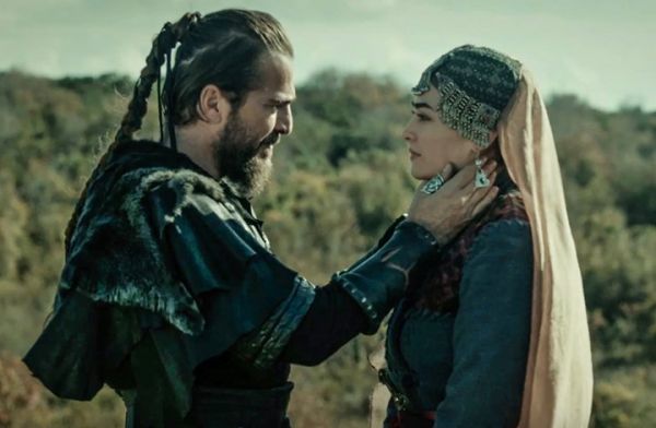 [ أرطغرل والسلطانة السلجوقية حليمة خلال لقطة من المسلسل ]